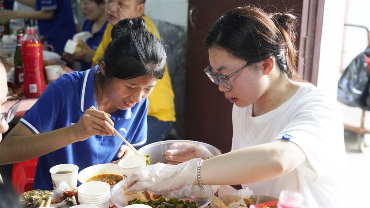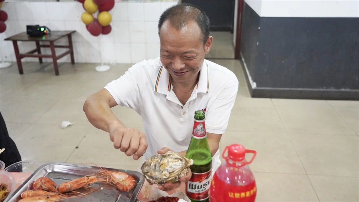 踏入餐廳,映入眼簾的是一盤盤美味的龍蝦、生蠔和飄香四溢的熱鹵、精致可口的小菜,還有清熱解渴的西瓜、冰鎮(zhèn)涼茶等。大家歡聚員工餐廳,圍桌而坐,歡聲笑語(yǔ)不斷,鮮嫩可口的海鮮在味蕾上綻放,一次次舉杯飽含喜樂(lè)、一聲聲歡笑傳遞幸福。