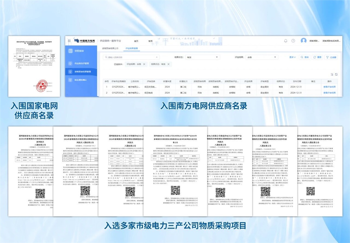 2025年,湘聯(lián)電纜在電力市場的沃土上持續(xù)向下扎根,向上生長。不僅穩(wěn)居國家電網(wǎng)、南方電網(wǎng)供應(yīng)商名錄,同時,入選多家市級電力三產(chǎn)公司的物資采購項目,將服務(wù)的根系拓展至更廣闊的生態(tài)圈。以深耕之姿,持續(xù)為電力系統(tǒng)的安全、穩(wěn)定與高效運行,貢獻堅實的力量。